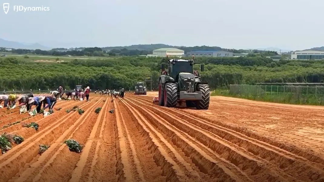 In the past, this was a very hard job that required a lot of focus and skill from the tractor driver. In Iksan, some of the local farmers use powerful Fendt 936 tractors, which are known for their strength and are a great fit for the sandy soil there. But to get those perfectly straight rows, they need more than just a strong tractor—they need a system that can steer with perfect accuracy. This is where FJDynamics technology helps make a tough job much easier.