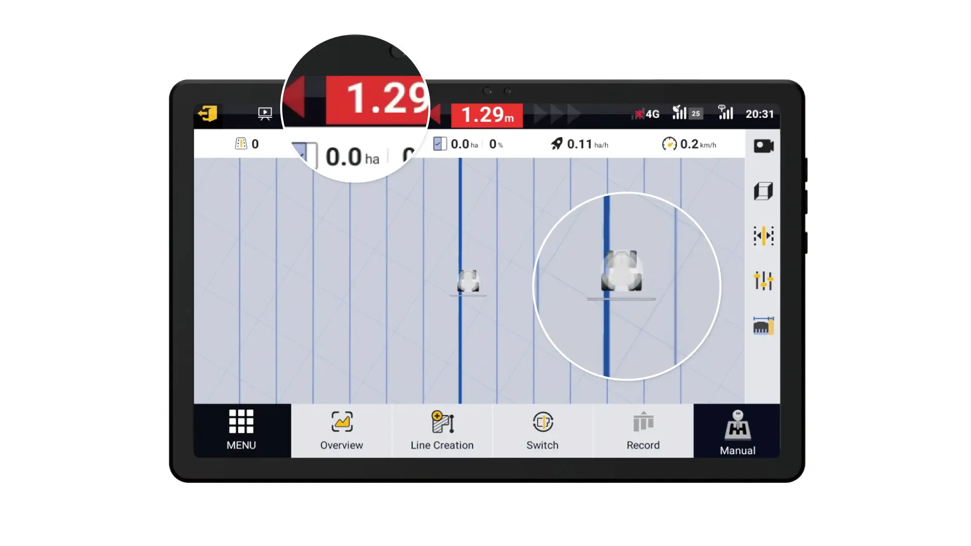By monitoring sensors, motor status, and vehicle traveling speed in real time, the AT2 Lite offers intelligent fault warnings to ensure the safety of equipment and personnel. When approaching objects or field boundaries, the system issues a timely warning and reminds you to turn around for safe and worry-free driving.