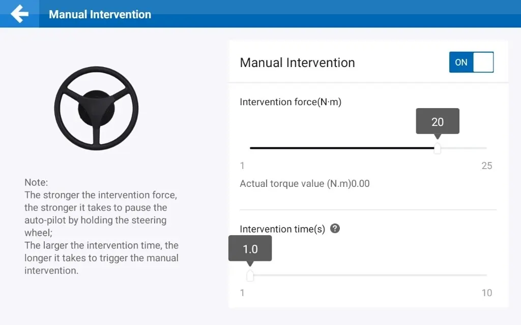 The AT2 Lite makes it easy to enable manual intervention if you find it hard to operate the screen due to space constraints or environmental disturbances. You can simply control the steering wheel by hand to deactivate the autopilot mode, giving you immediate control between manual and automatic driving for sake.